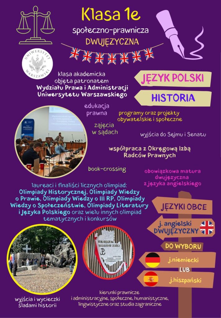 CLASS 1E – BILINGUAL CLASS WITH EXTENDED CLASSES IN POLISH and CIVICS WITH ELEMENTS OF LEGAL EDUCATION