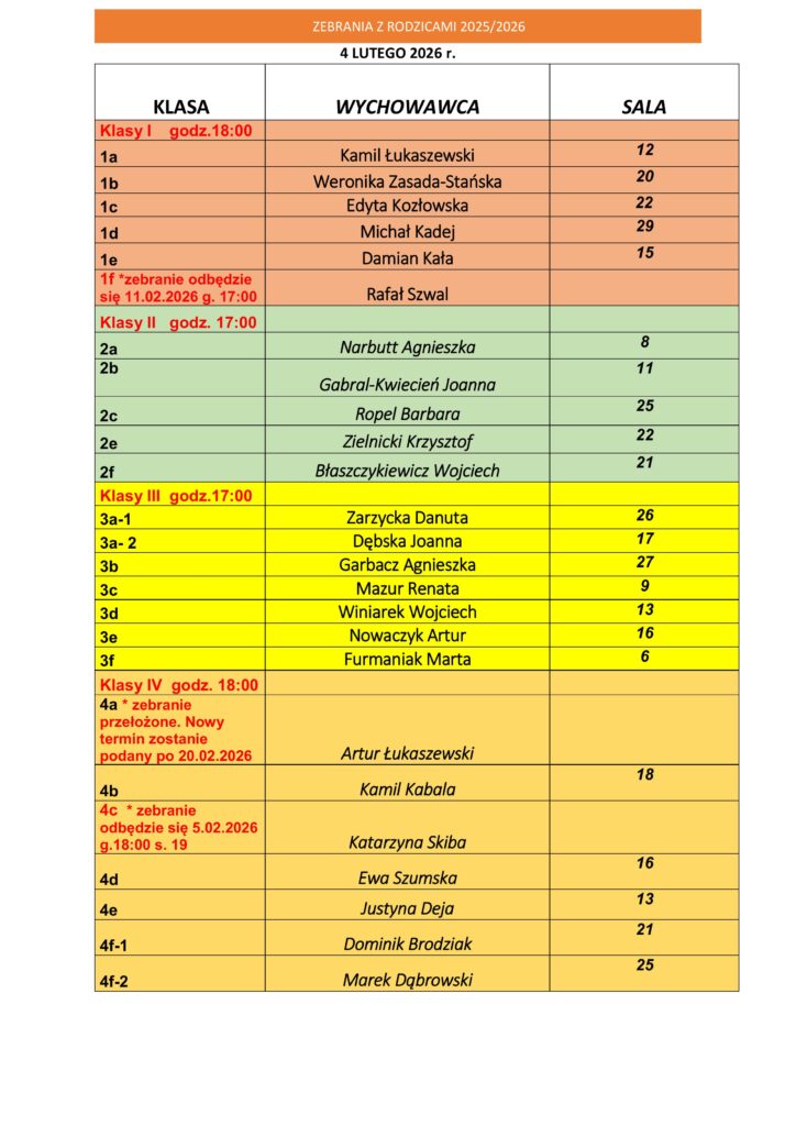 | Nr | Termin | Klasy |